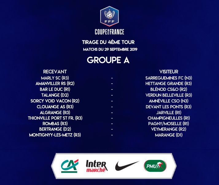 Hier a eu lieu le tirage de la Coupe de France pour nos clubs mosellans. Ce 4ème tour est souvent appelé » tour des maillots « , oui, il permet d’obtenir le 1er jeu de maillot de la saison offert par la FFF