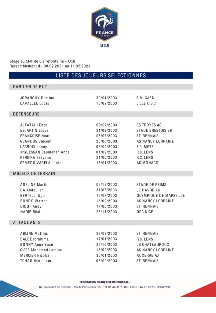 Cette rencontre amicale refermait un rassemblement de quatre jours, du 10 au 13 mai, des U18 tricolores à Clairefontaine. La selection se retrouvera pour un dernier stage, du 31 mai au 4 juin à Ploufragan (Côtes-d’Armor).