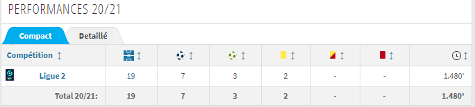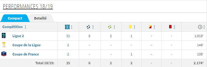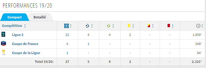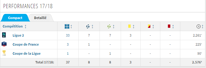De belles statistiques pour un milieu offensif en début de carrière, rappelons qu’il n’a que 23 ans et deja une expérience significative dans le monde professionnel. Avec 24 buts et 16 passes décisives, il est une valeur sur de Ligue 2. A lui maintenant de franchir un pallier en devenant titulaire dans une équipe de Ligue 1.